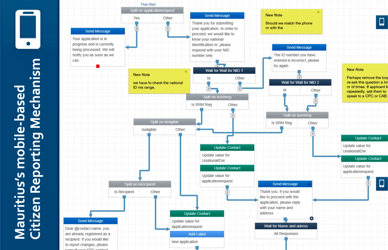 Based on UNICEF’s RapidPro open-source software, the CRM system will include features that will allow the users to receive information on new pro-poor policies, and to share feedback and report issues in the delivery of services. The mechanism will be mainly operated by the Ministry of Social Integration and Economic Empowerment (MSIEE) and its anti-poverty implementing arm, the National Empowerment Foundation. The target audience is eligible applicants registered in the Social Register of Mauritius (SRM) who benefit from social programmes under the Marshall Plan Against Poverty (the SRM is a tool to identify the poor and their socio-economic profile so as to inform policy-makers on the effective demand for pro-poor policies).