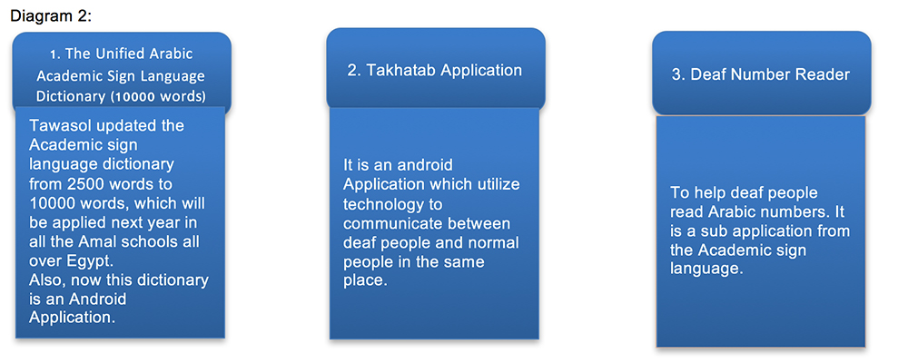 6. KCG has installed and tested the Tawasol system in two different Deaf Schools one in Cairo and the second was in Al-Fayoum City. The results were positive with great interest from both teachers and students.